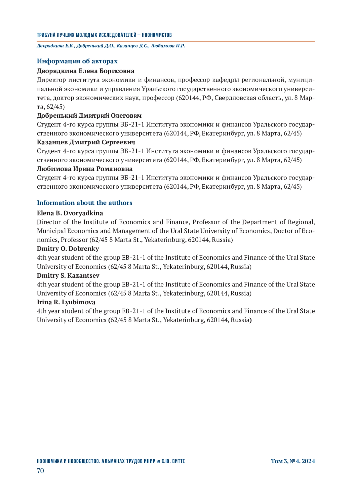 - Зотова Е.С. (2022). Генезис ноономики: проблема отражения в экономическом образовании // Экономическое возрождение России. №34 (74). С. 75-81.