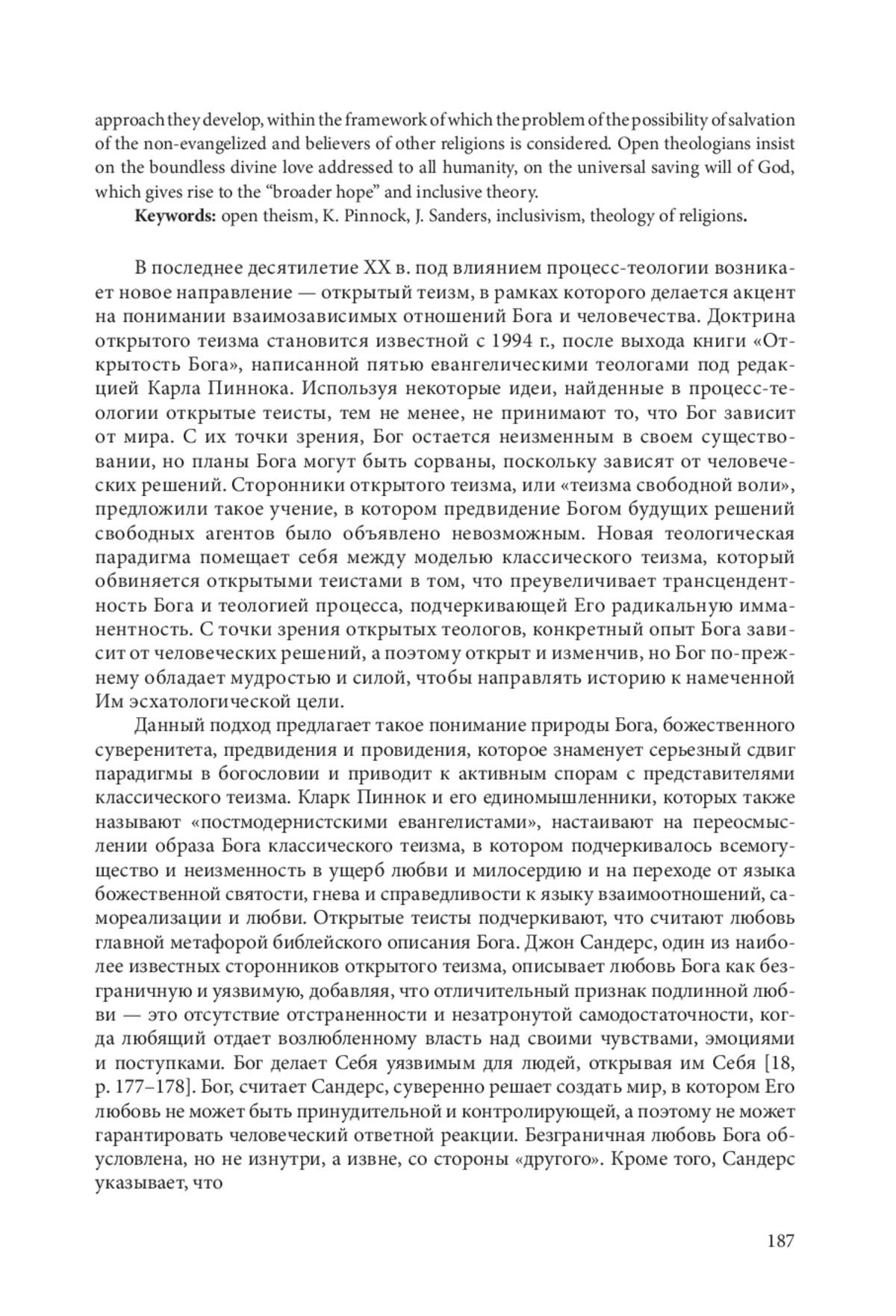14. Sanders, J. “An Introduction to Open Theism”. Reformed Review: A Theological Journal of Western Theological Seminary. 2007. Vol. 60. No. 2. Р. 34-50.