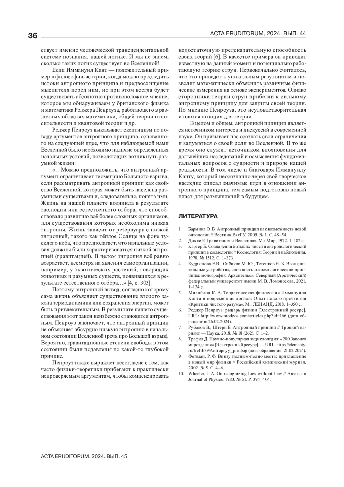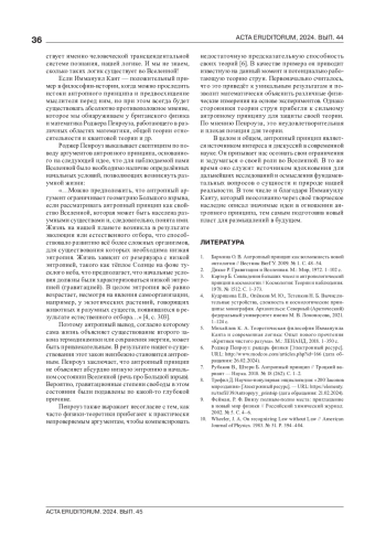 1. Бармина О. В. Антропный принцип как возможность новой онтологии // Вестник ВятГУ. 2009. № 1. С. 48-54.