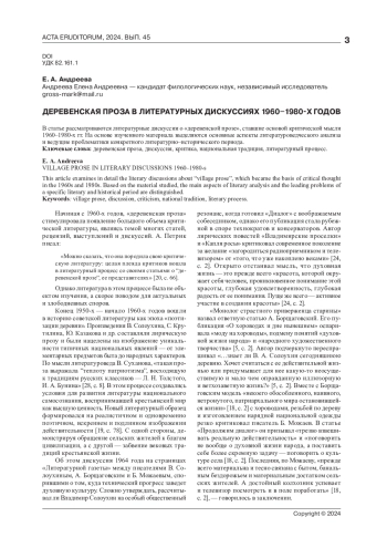 26. Старикова Е. В. Социологический аспект современной деревенской прозы // Вопросы литературы. 1972. № 7. С. 11-36.