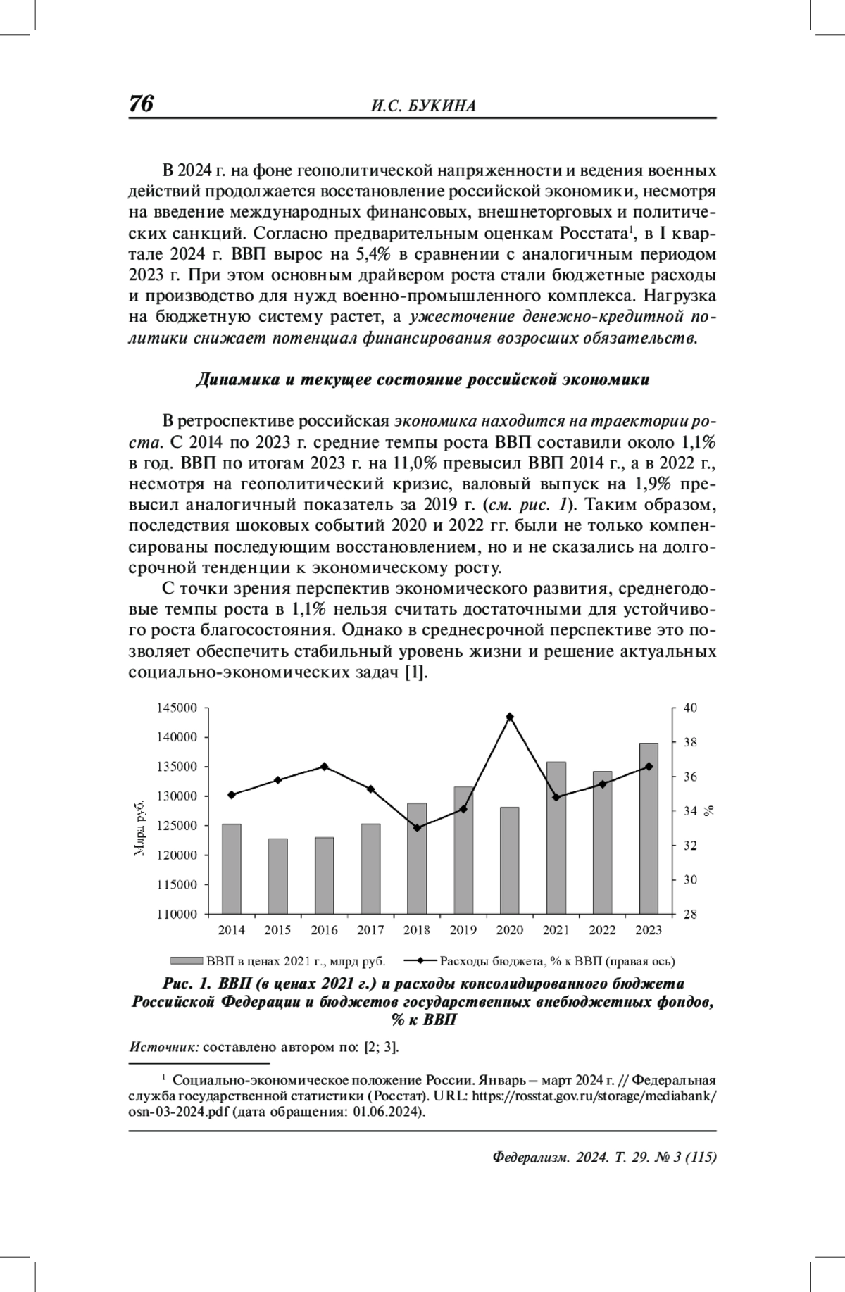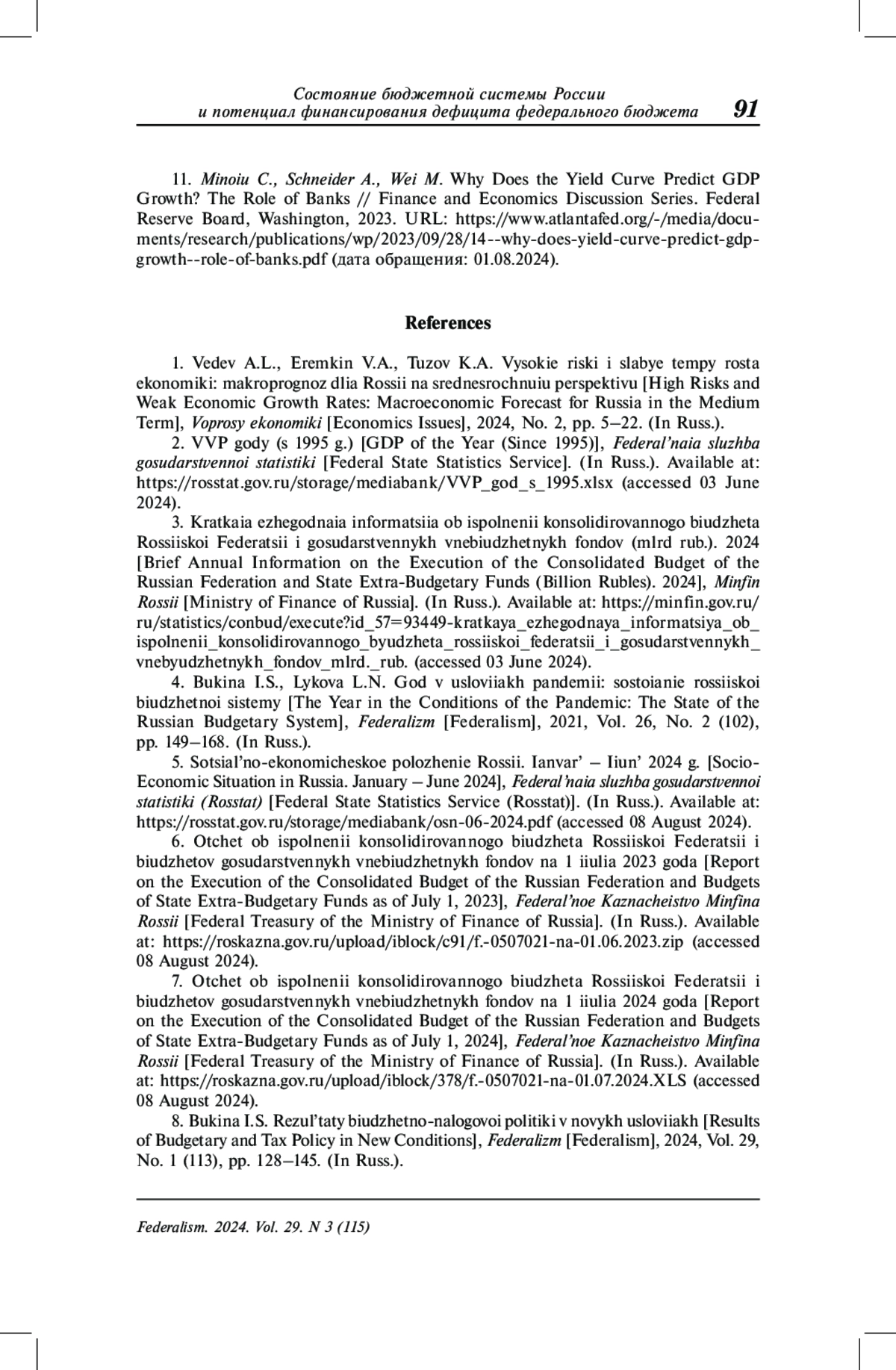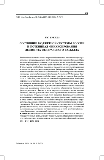 БУКИНА И. С. СОСТОЯНИЕ БЮДЖЕТНОЙ СИСТЕМЫ РОССИИ И ПОТЕНЦИАЛ ФИНАНСИРОВАНИЯ ДЕФИЦИТА ФЕДЕРАЛЬНОГО БЮДЖЕТА // ФЕДЕРАЛИЗМ. 2024. ТОМ 29, №3