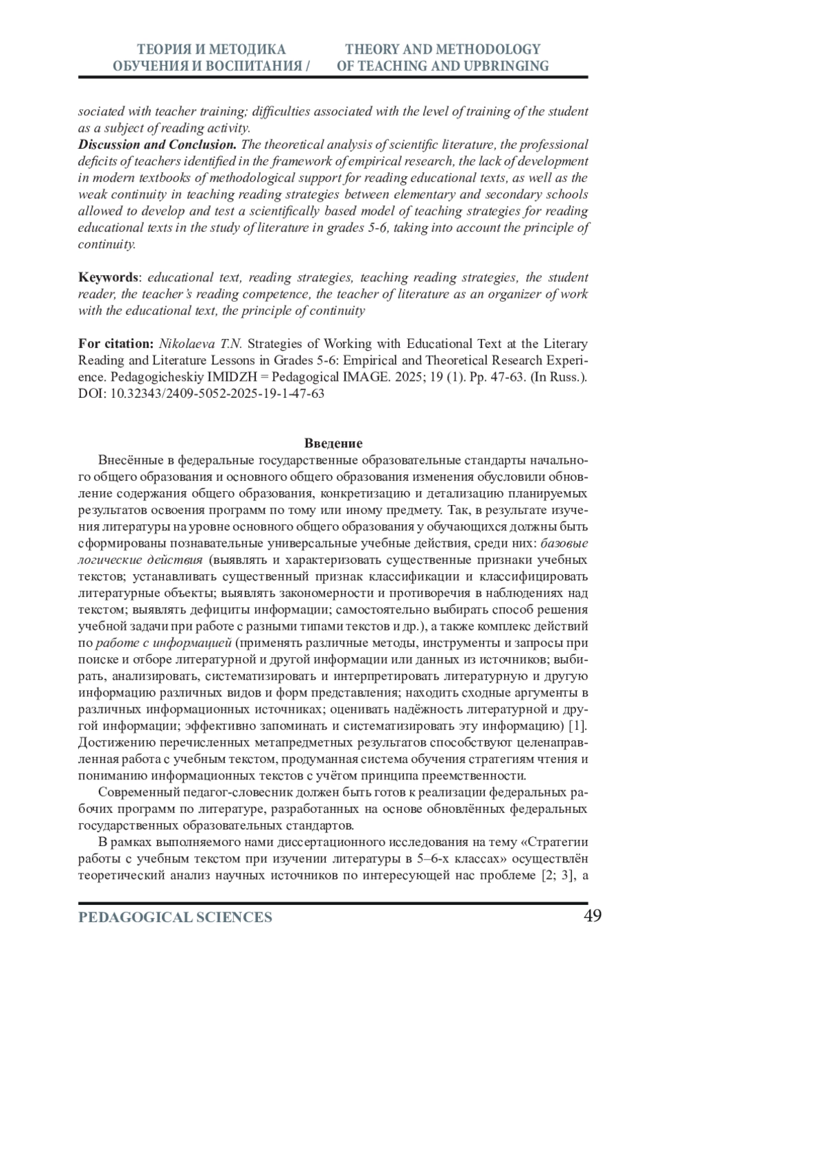 2. Николаева Т. Н. Диагностика уровня сформированности у пятиклассников умений использовать стратегии чтения учебного текста // Литературное образование и воспитание: ценностные ориентиры и стратегии в информационную эпоху. XXXII Голубковские чтения: мат-лы Междунар. науч.-практ. конф. / отв. ред. В. Ф. Чертов, А. М. Антипова. М. : МПГУ, 2025. С. 249–258.