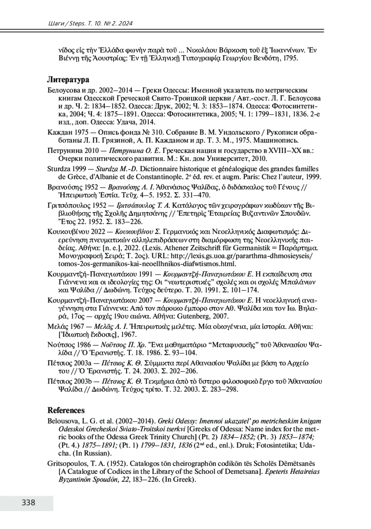 11. Βρανούσης 1952 - Βρανούσης Λ. Ι. Ἀθανάσιος Ψαλίδας, ὁ διδάσκαλος τοῦ Γένους // Ἠπειρωτικὴ Ἑστία. Τεῦχ. 4-5. 1952. Σ. 331-470.