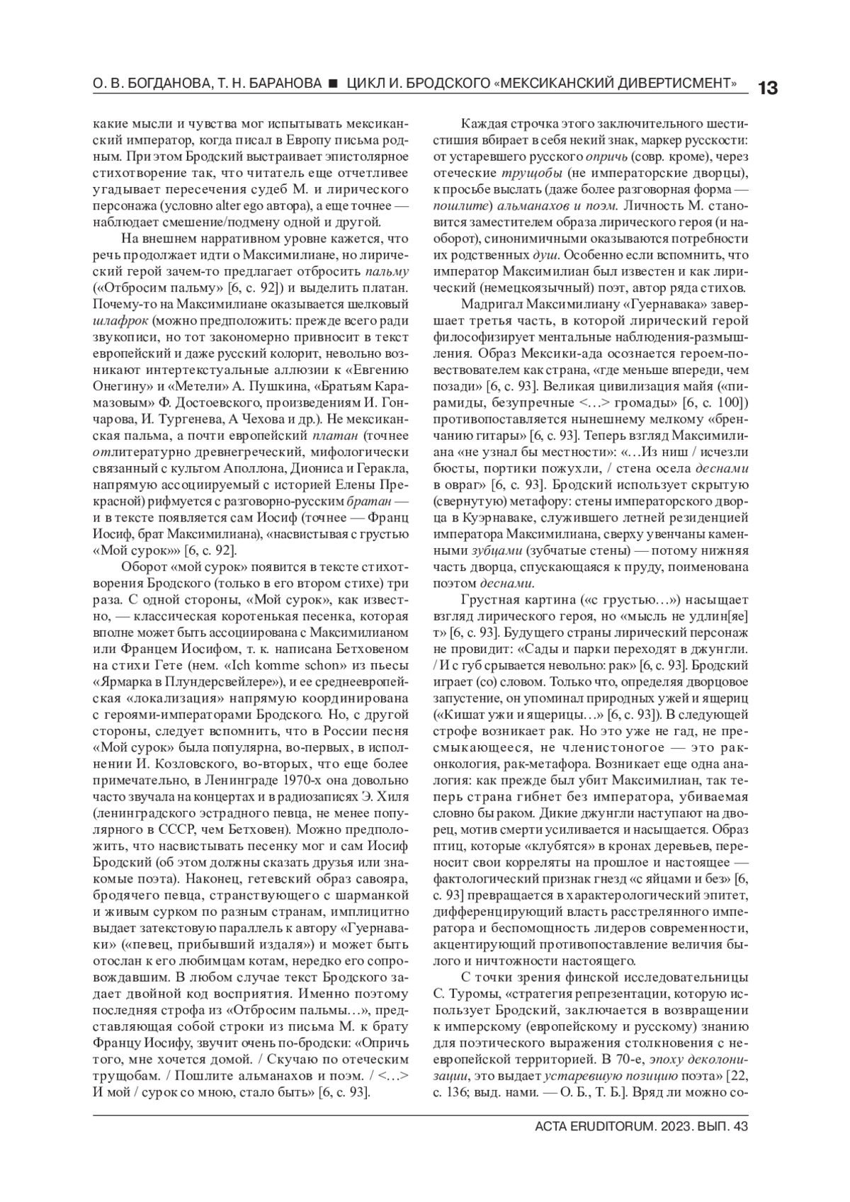 18. Райнхардт Р. О. “Мексиканский дивертисмент” Иосифа Бродского: лингвокультурологический анализ // Филологические науки в МГИМО. - 2021. - Т. 7. - № 3. - С. 86-96. EDN: MEAADE