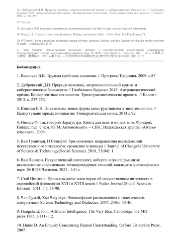 6. Ван Хаошэн. Искусственный интеллект, киборги и (пост)гуманизм: исследование современных технокультурных течений. кандидата философскихн наук. № B028 Чжэцзян, 2021 - 141 с.