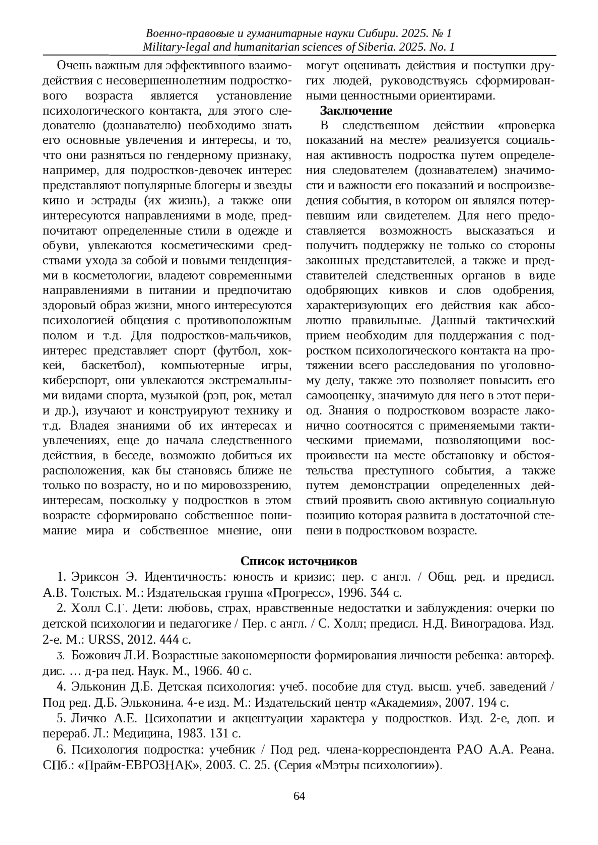 6. Психология подростка: учебник / Под ред. члена-корреспондента РАО А.А. Реана. СПб.: “Прайм-ЕВРОЗНАК”, 2003. С. 25. (Серия “Мэтры психологии”).