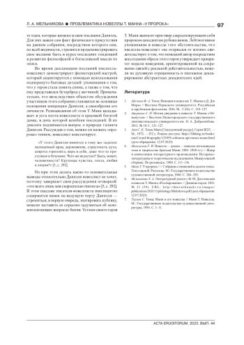 6. Мельникова Л. А. Литературный диалог с Ф. М. Достоевским в новелле Т. Манна “Разочарование” / Дневник науки. 2021. № 11 (59). URL: http://dnevniknauki.ru/images/publications/2021/11/philology/Melnikova.pdf. EDN: AXRDYR