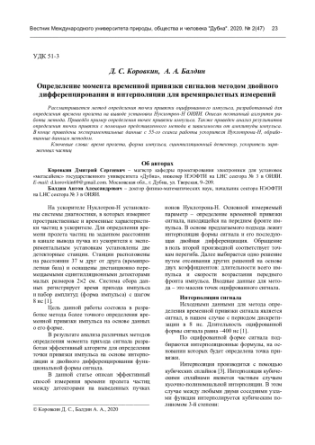 1. Коровкин Д.С. Измерение состава пучка Нуклотрона методом 2ΔE-T / Магистр. дисс. Дубна: Гос. ун-т “Дубна”, 2020.