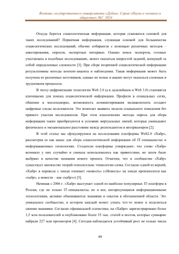 Откуда берется социологическая информация, которая становится основой для таких исследований? Первичная информация, служащая основой для большинства социологических исследований, обычно собирается с помощью различных методов – анкетирования, опросов, экспертных интервью. Однако поиск экспертов, готовых участвовать в подобных исследованиях, может оказаться непростой задачей, влекущей за собой определенные сложности [3]. При сборе вторичной социологической информации результативны методы контент-анализа и наблюдения. Такая информация может быть получена из различных источников, однако их поиск и анализ могут оказаться сложным и трудоемким процессом.