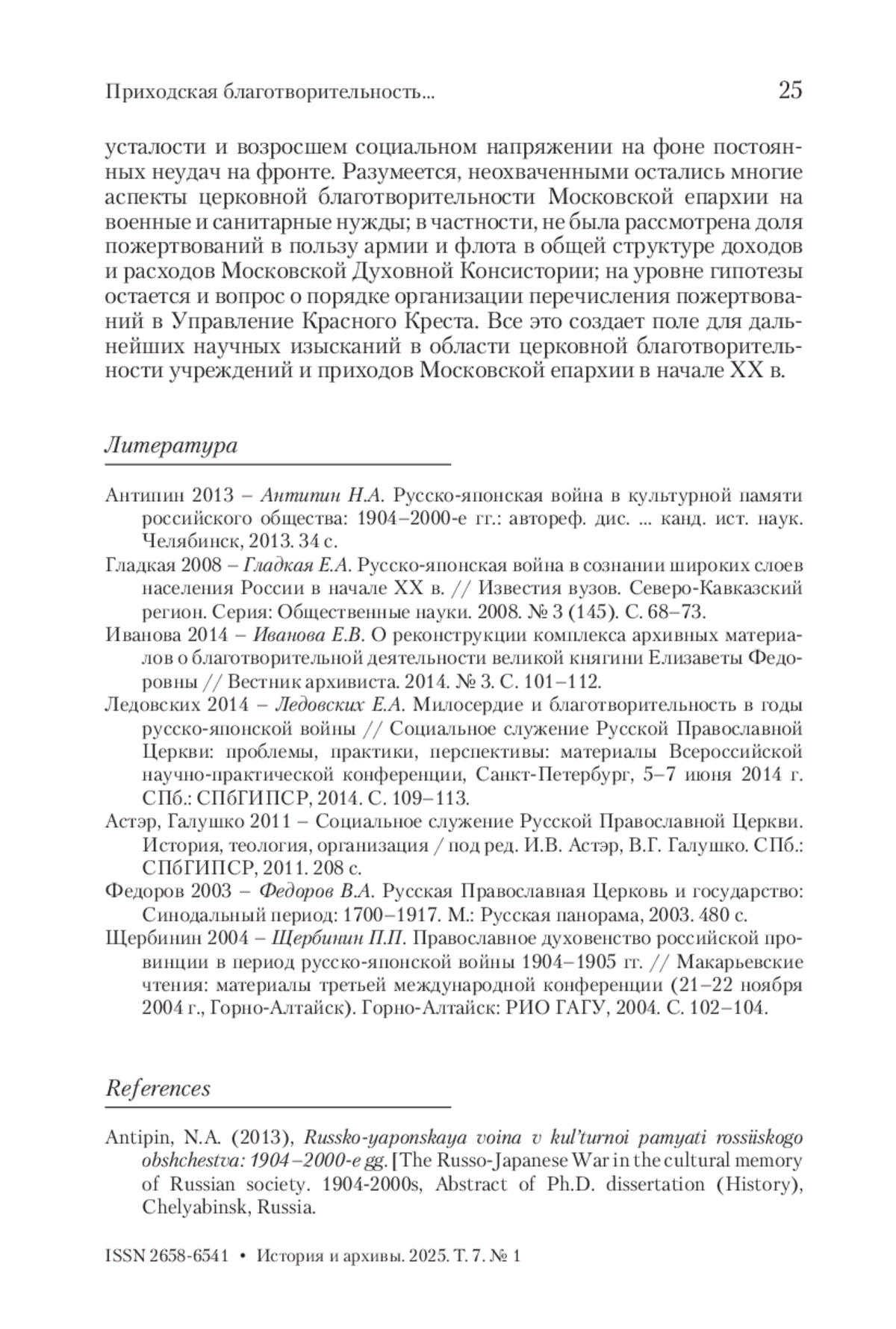4. Ледовских 2014 - Ледовских Е.А. Милосердие и благотворительность в годы русско-японской войны // Социальное служение Русской Православной Церкви: проблемы, практики, перспективы: материалы Всероссийской научно-практической конференции, Санкт-Петербург, 5-7 июня 2014 г. СПб.: СПбГИПСР, 2014. С. 109-113.