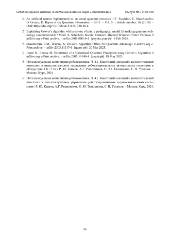 Рассмотрены принципы и методы построения моделей квантового «сильного» вычислительного интеллекта на основе инструментария квантового глубокого обучения с применением квантовых нейронных сетей и квантового генетического алгоритма. Обсуждаются дополнительные особенности моделей квантового перцептрона и модели инженерии квантового глубокого обучения при применении инструментария оптимизации баз знаний интеллектуальных регуляторов на основе QCOptKBTM в задачах квантового интеллектуального управления роботизированными социотехническими системами в проектах «Индустрия 4.0 / 5.0 /6.0». Описание особенностей квантового глубокого обучения позволяет точнее и глубже освоить возможности инструментария QCOptKBTM, который включает в себя этапы обучения и извлечения (из исходных данных) сигнала обучения за счет инструментария SCOptKBTM на технологии мягких вычислений, и далее рассматривается как классические данные. За счет операторов квантовых вычислений классические данные кодируются кубитами, осуществляется оптимальный выбор квантовой корреляции между искомыми решениями и применением конструктивной интерференции извлекается искомый результат путем измерения. Таким образом, разработанный интеллектуальный инструментарий SCOptKBTM и QCOptKBTM включает принципы квантового глубокого обучения, и также как в случае технологии мягких вычислений, формирует оптимальную структуру теперь квантовой нейронной сети, а за счет применения квантового генетического алгоритма ускоряет поиск искомого решения.