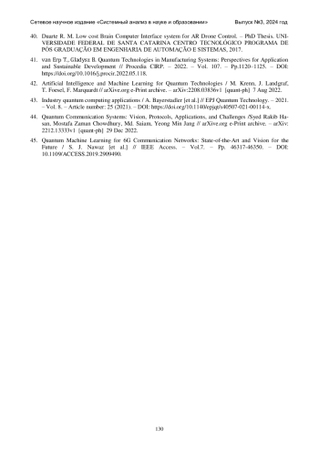 41. van Erp T., Gladysz B. Quantum Technologies in Manufacturing Systems: Perspectives for Application and Sustainable Development // Procedia CIRP. - 2022. - Vol. 107. - Pp.1120-1125. -. DOI: 10.1016/j.procir.2022.05.118 EDN: MYMWIC