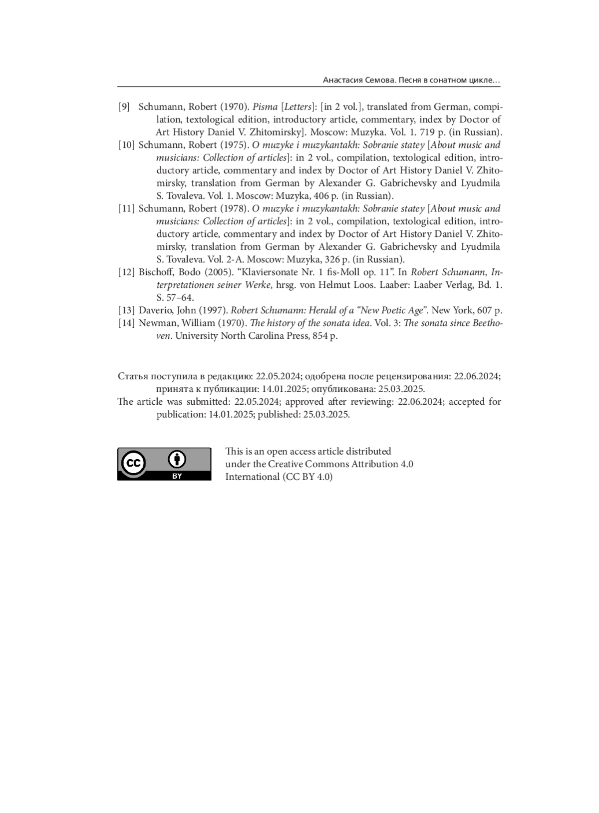 7. Николаева 1990 - Николаева Н. С. Р. Шуман. Творческий облик композитора. Эстетика и стиль. Фортепианная музыка. Камерные инструментальные ансамбли. Симфонии и увертюры // Музыка Австрии и Германии: [в 2 т.]. Москва: Музыка, 1990. Т. 2. C. 107-304.