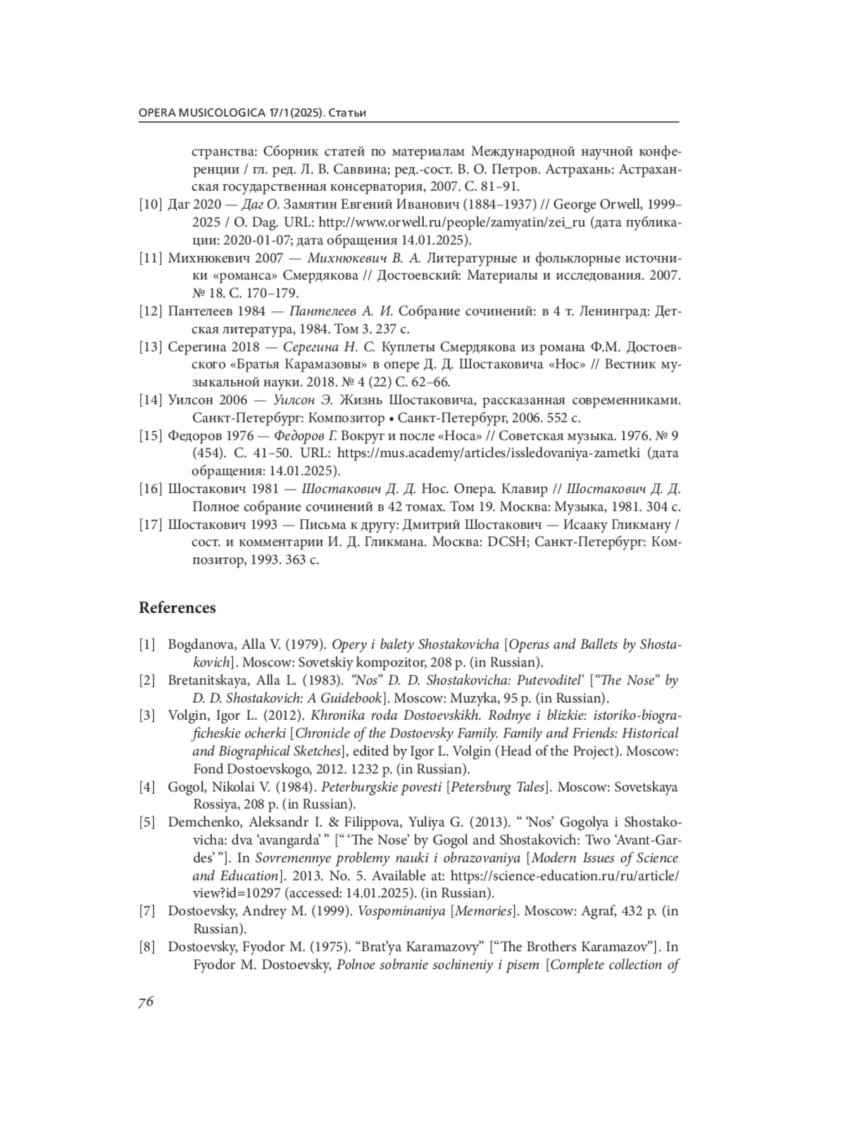 5. Демченко, Филиппова 2013 - Демченко А. И., Филиппова Ю. Г. “Нос” Гоголя и Шостаковича: два “авангарда” // Современные проблемы науки и образования. 2013. № 5. URL: https://science-education.ru/ru/article/view?id=10297 (дата обращения: 14.01.2025). EDN: RRJYTN
