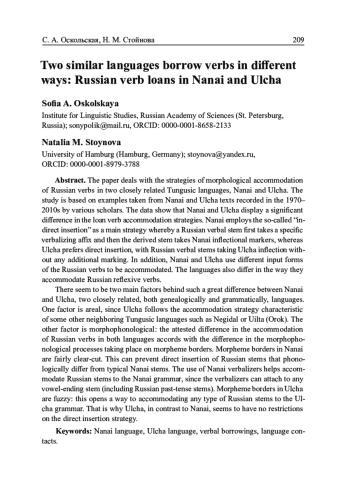- Stoynova 2019 — N. Stoynova. Russian in contact with Southern Tungusic languages: Evidence from the Contact Russian Corpus of Northern Siberia and the Russian Far East // Slavica Helsingiensia. 2019. Vol. 52. P. 9–36.