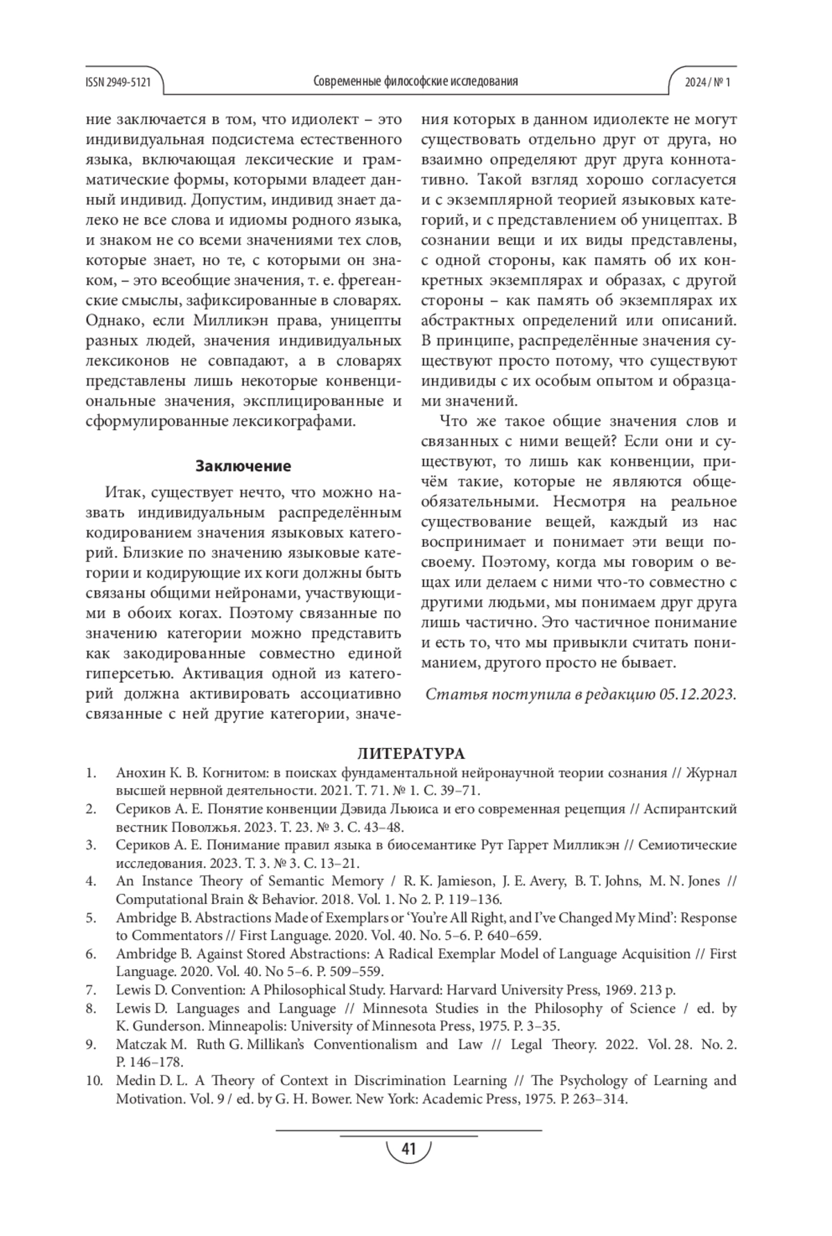 2. Сериков А. Е. Понятиe конвенции Дэвида Льюиса и его современная рецепция // Аспирантский вестник Поволжья. 2023. Т. 23. № 3. С. 43-48.