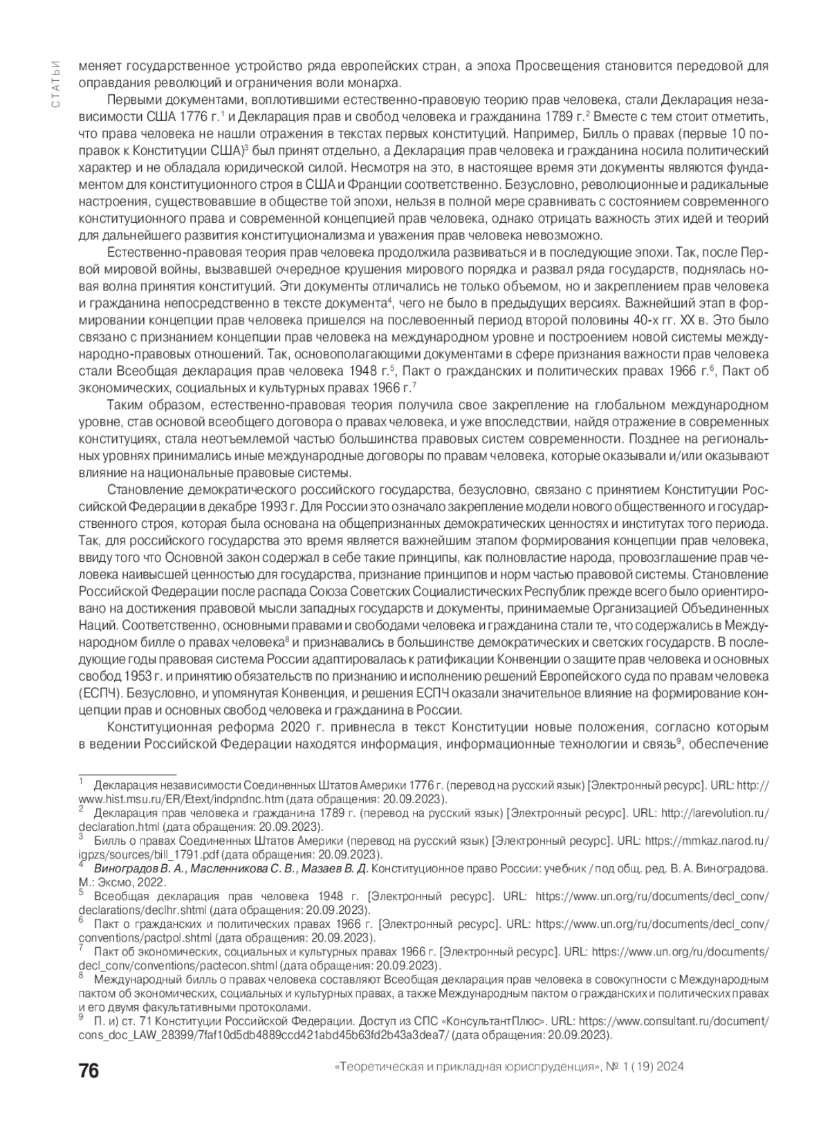 2. Арановский К. В., Князев С. Д., Хохлов Е. Б. О правах человека и социальных правах. Сравнительное конституционное обозрение, 2012. № 4. С. 61-91. EDN: PBQYKX