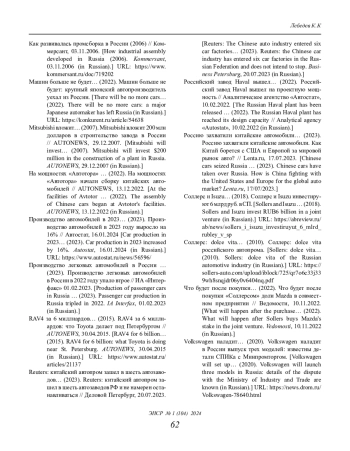 14. Чупров А. (2023). Минпромторг анонсировал покупку завода Hyundai в Петербурге российским инвестором. URL: https://www.autostat.ru/news/55726.