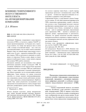 Процедуры управления компаниями находятся сегодня в преддверии существенных изменений, связанных с активным применением цифровых решений и особенно генеративного искусственного интеллекта 1 (ГИИ). Вторжение данных технологий грозит изменить традиционные подходы к деятельности бизнеса, повысить производительность и сократить затраты. Но пока многие вопросы, связанные с их использованием, остаются открытыми, что определяет потребность в оценке намечающихся тенденций и способов эффективного применения данных решений.