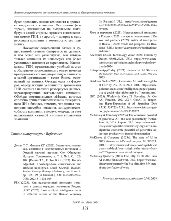 2. РБК (2023). Как искусственный интеллект помогает в разных отраслях экономики России. URL: https://www.rbc.ru/economics/19/10/2023/65300e6c9a7947a4b7a98be4?from=copy.