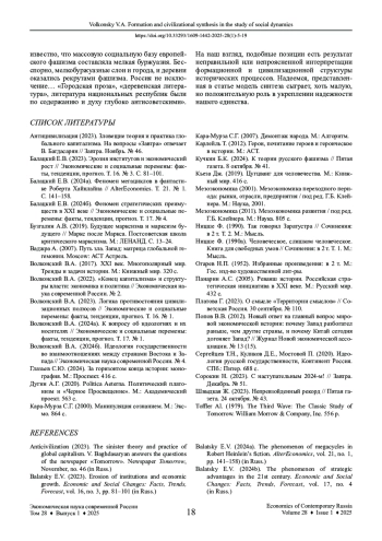 8. Волконский В.А. (2022). “Конец капитализма” и структуры власти: экономика и политика // Экономическая наука современной России. № 2.