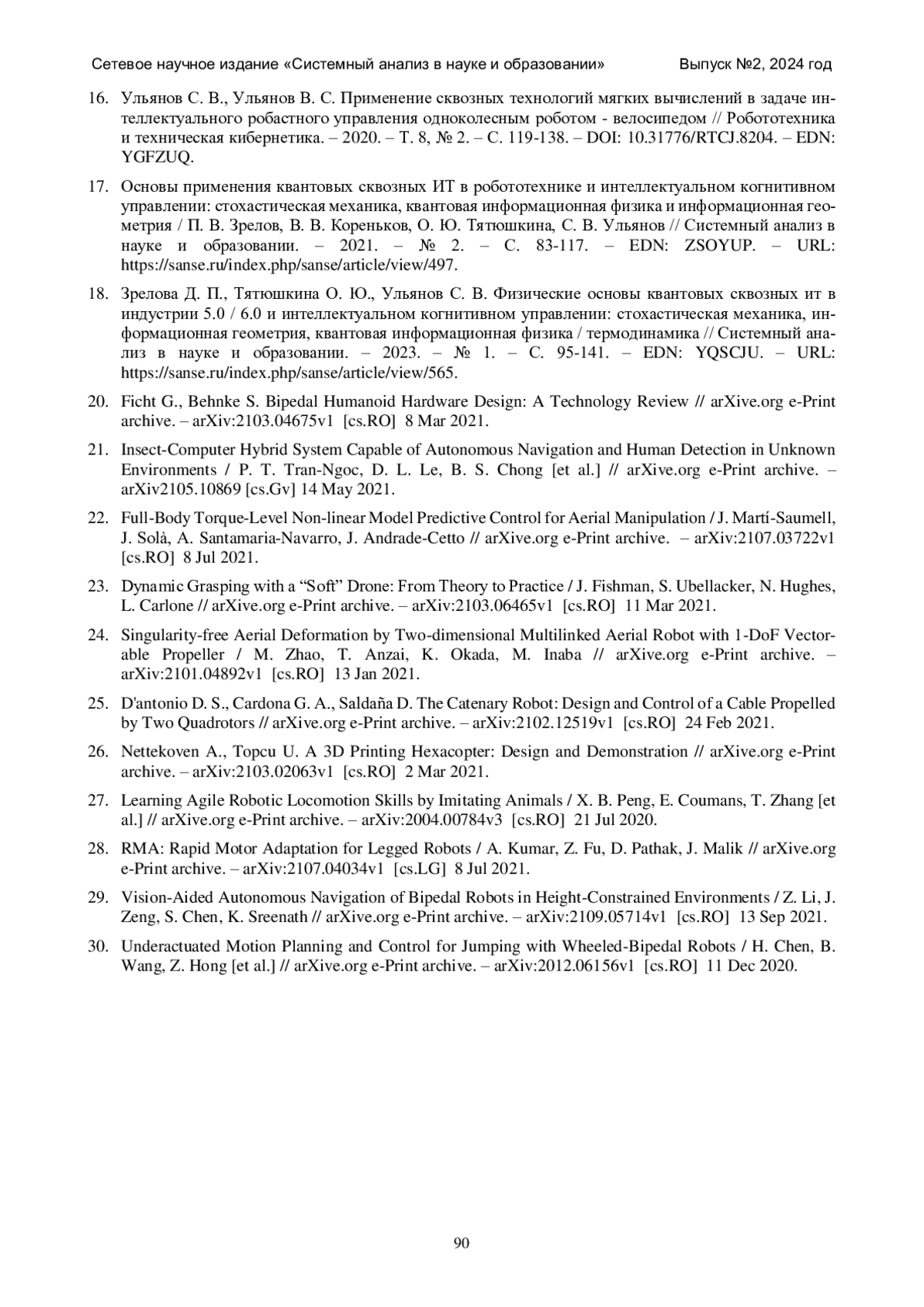 17. Основы применения квантовых сквозных ИТ в робототехнике и интеллектуальном когнитивном управлении: стохастическая механика, квантовая информационная физика и информационная геометрия / П. В. Зрелов, В. В. Кореньков, О. Ю. Тятюшкина, С. В. Ульянов // Системный анализ в науке и образовании. - 2021. - № 2. - С. 83-117. - - URL: https://sanse.ru/index.php/sanse/article/view/497. EDN: ZSOYUP