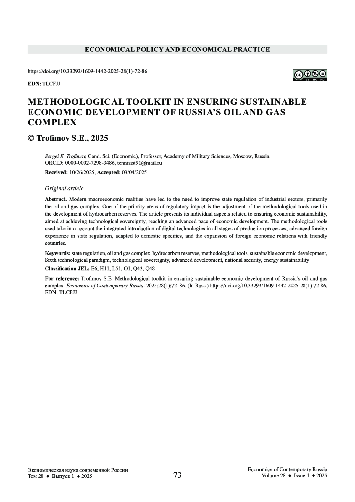 25. Трофимов С.Е. (2023a). Методологический инструментарий реализации нефтегазовых проектов на арктическом и континентальном шельфе // Мир новой экономики. № 2. С. 94-102. EDN: RLXILP