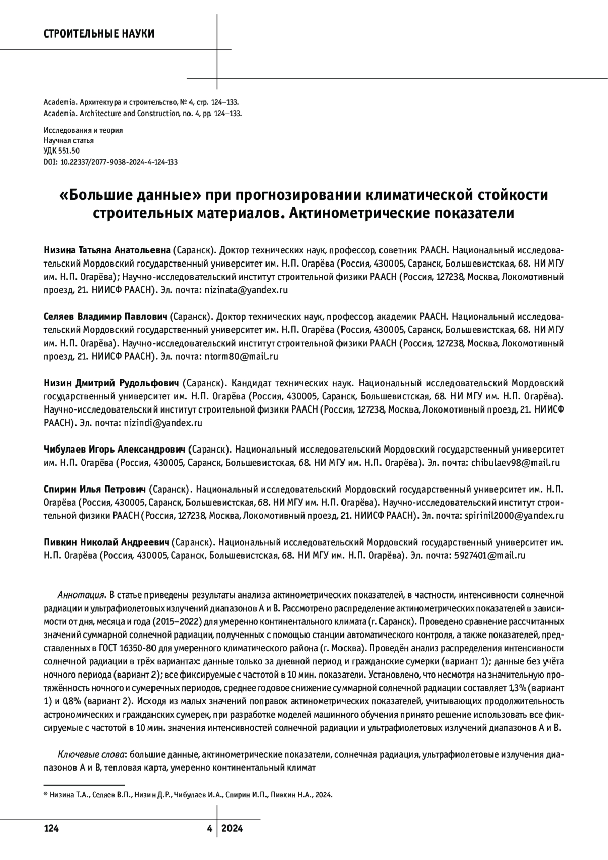 7. Большие данные при прогнозировании климатической стойкости строительных материалов. I. Температура и влажность воздуха / Т.А. Низина, Д.Р. Низин, В.П. Селяев [и др.]. – DOI: 10.58224/2618-7183-2023-6-3-18-30. – Текст: электронный // Строительные материалы и изделия. – 2023. – Том 6, № 3. – С. 18–30. – URL: https://elibrary.ru/download/ elibrary_54226572_23354928.pdf (дата обращения 26.06.2024).