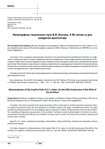 20 января 2024 года исполнилось 90 лет со дня рождения Вячеслава Ивановича Локтева – выдающегося русского и советского архитектора, выпускника и профессора МАРХИ, чьё творчество стало частью футуристического направления отечественной архитектуры (рис. 1) В. И. Локтев – архитектор-новатор, выдающийся педагог и теоретик архитектуры. Его работы находятся в коллекциях таких крупнейших российских музеев, как Третьяковская галерея, Русский музей, Музей архитектуры имени А. В. Щусева, а также в частных собраниях. Наиболее полная и многочисленная коллекция наследия В. И. Локтева хранится в Музее МАРХИ. Именно с родным вузом были связаны главные этапы жизни и творчества архитектора.
