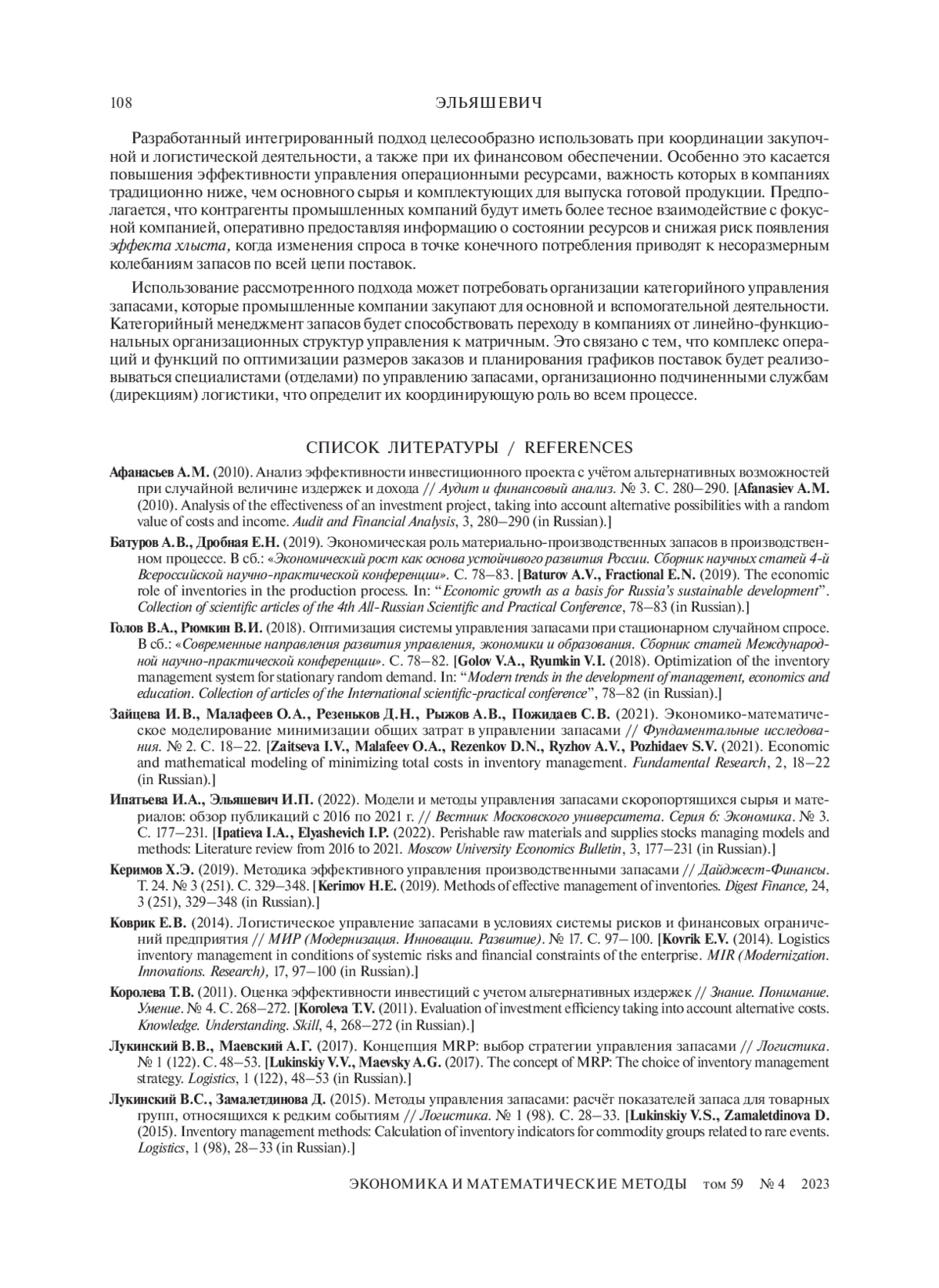 5. Ипатьева И.А., Эльяшевич И.П. (2022). Модели и методы управления запасами скоропортящихся сырья и материалов: обзор публикаций с 2016 по 2021 г. // Вестник Московского университета. Серия 6: Экономика. № 3. С. 177-231. EDN: HMHEMC