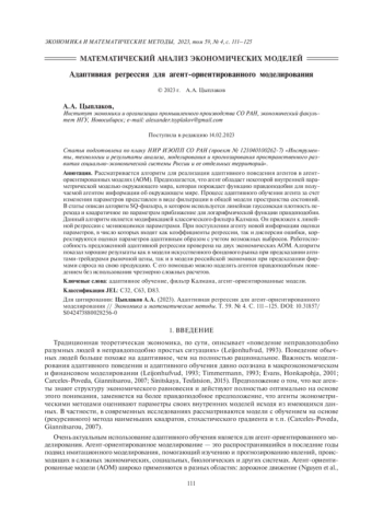 3. Цыплаков А.А. (2022). Стационарность и рост в агент-ориентированной модели экономики // Мир экономики и управления. Т. 22. № 1. С. 84-102. EDN: PADNPO