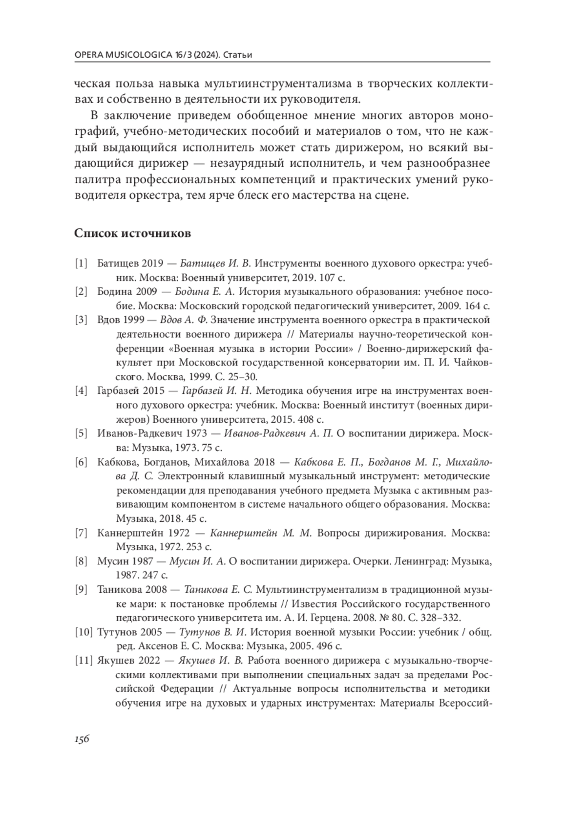 1. Батищев 2019 - Батищев И. В. Инструменты военного духового оркестра: учебник. Москва: Военный университет, 2019. 107 с.