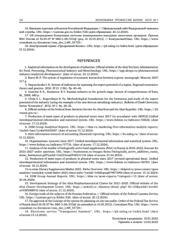 1. Аналитическая информация о развитии отраслей // Официальный сайт Управления Алтайского края по пищевой, перерабатывающей, фармацевтической промышленности и биотехнологиям. URL: https://upp.alregn.ru/pharmaceutical-industry/analytical-development/ (дата обращения: 22.12.2024).