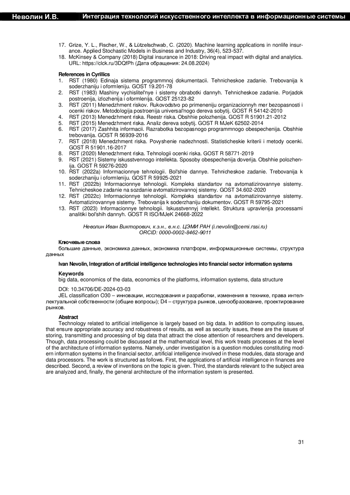 13. РСТ (2023) Информационные технологии. Искусственный интеллект. Структура управления процессами аналитики больших данных. ГОСТ Р ИСО/МЭК 24668-2022.
