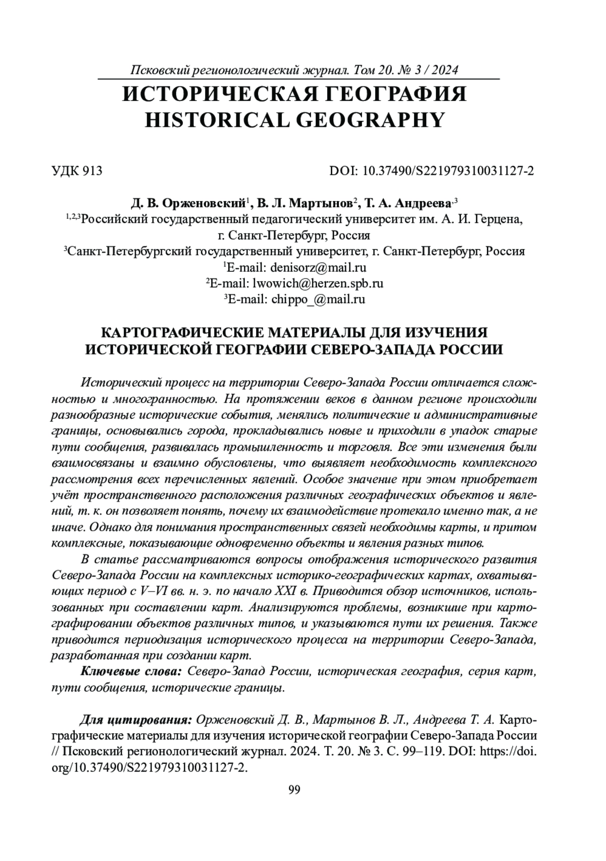 14. Мартынов В. Л., Сазонова И. Е., Корнекова С. Ю., Олифир Д. И. Историческая география Северо-Запада России. СПб.: Издательство РГПУ им. А. И. Герцена, 2021. 335 с. EDN: FBOYCS
