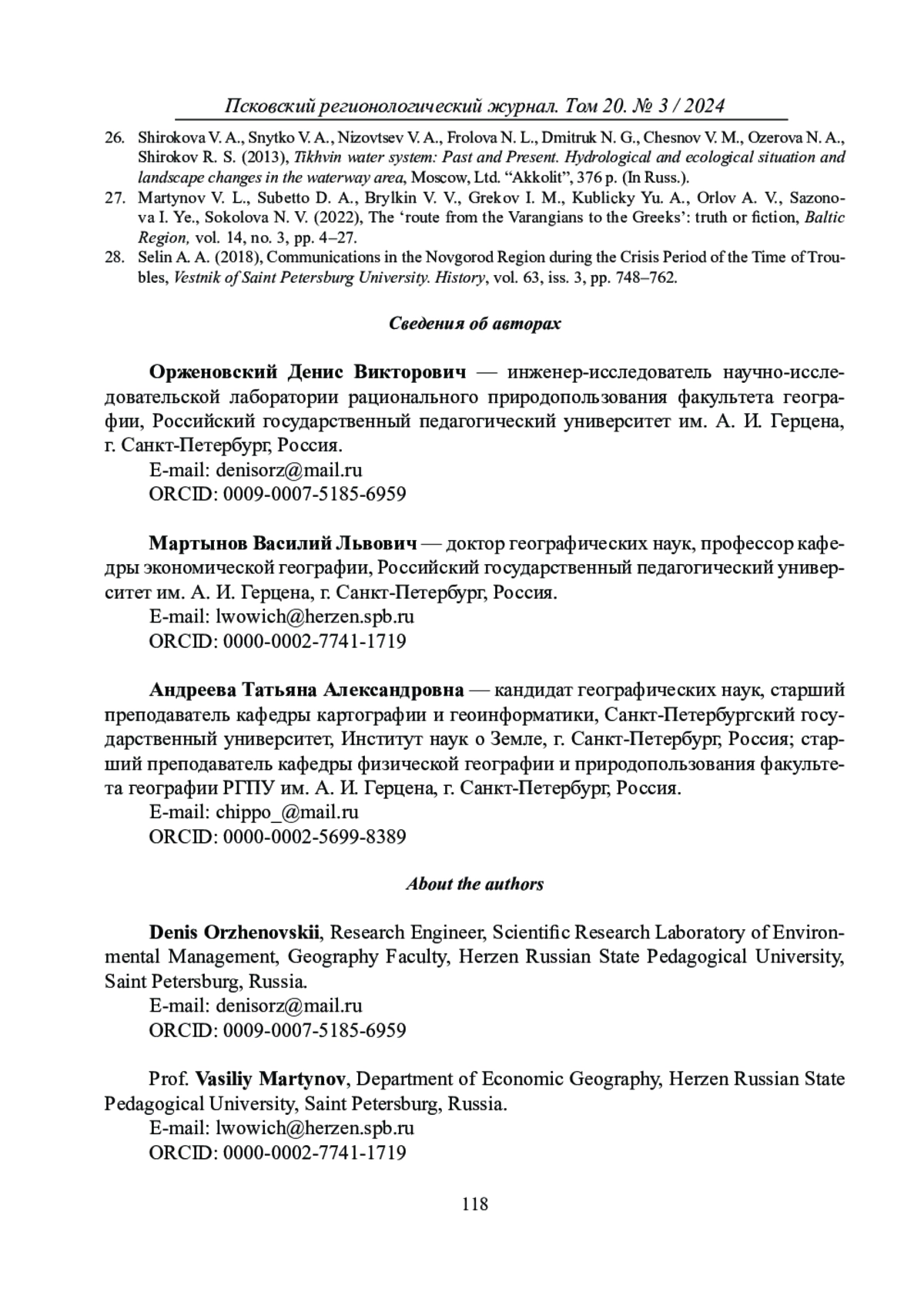 27. Martynov V. L., Subetto D. A., Brylkin V. V., Grekov I. M., Kublicky Yu. A., Orlov A. V., Sazonova I. Ye., Sokolova N. V. The ‘route from the Varangians to the Greeks’: truth or fiction // Baltic Region. Vol. 14. No. 3. P. 4-27.