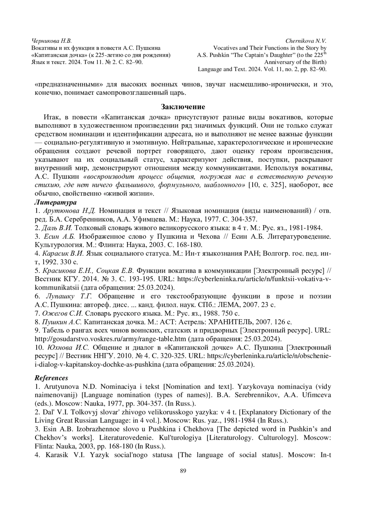 6. Лупашку Т.Г. Обращение и его текстообразующие функции в прозе и поэзии А.С.Пушкина: автореф. дисс.... канд. филол. наук. СПб.: ЛЕМА, 2007. 23 с. EDN: NJDCTD