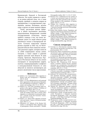 5. Соколова А.А. Возвратная трудовая миграция в России: масштабы и тенденции // Вопросы территориального развития. 2022. С. 1-17. EDN: TGZZYA