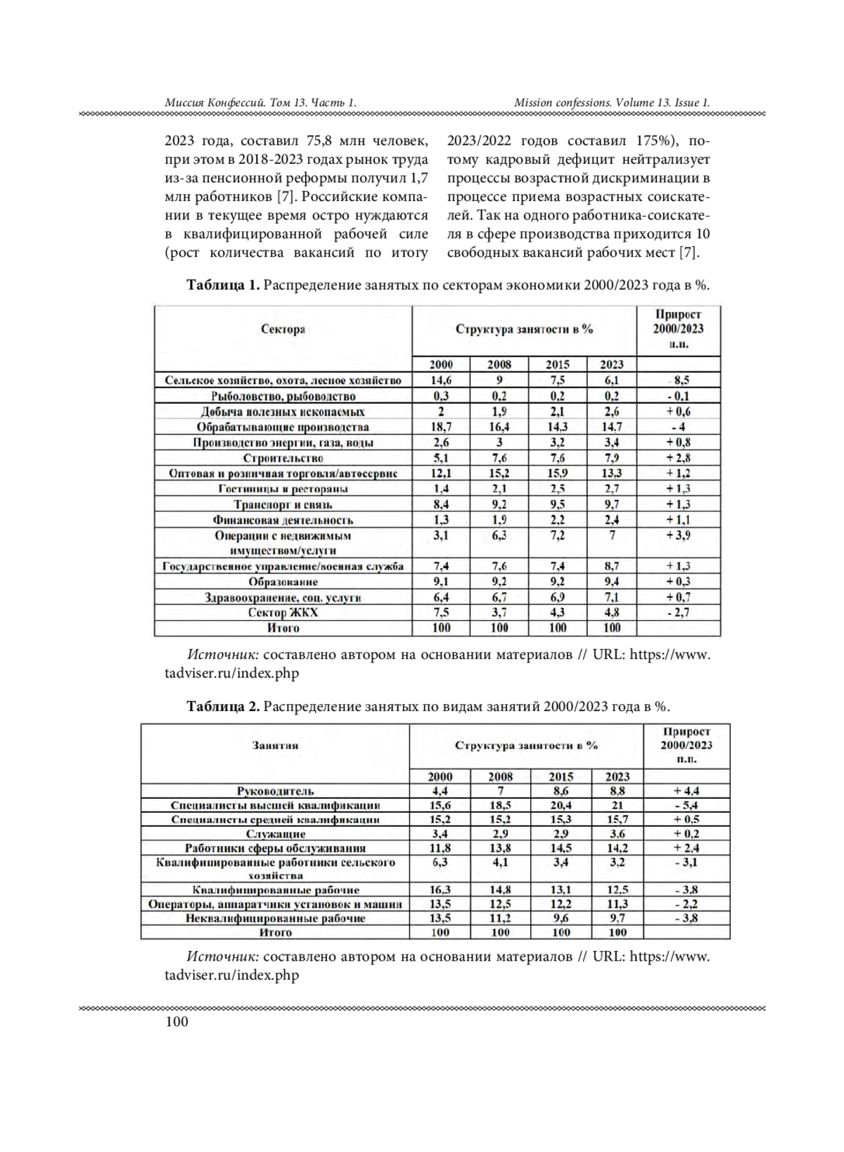 4. Динамика режимов занятости основного персонала за 2023 год // Рынок труда в России TADVISER - 2023. // URL: https://www.tadviser.ru/index.php (Дата обращения: 17.01.2023).