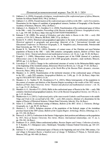20. Манаков А. Г. Трансформация территориальной структуры конфессионального пространства России в XX - начале XXI в. // Географический вестник. 2019. № 2 (49). С. 13-24. DOI: 10.17072/2079-7877-2019-2-13-24 EDN: RSTSQF