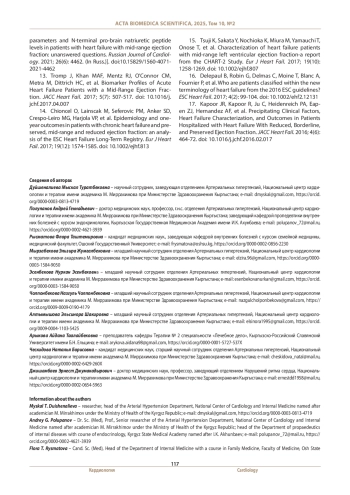 12. Лясникова Е.А., Куулар А.А., Павловская А.В., и др. Влияние ожирения на эхокардиографические особенности и N-концевой предшественник мозгового натрийуретического пептида у больных с сердечной недостаточностью и промежуточной фракцией выброса левого желудочка: нерешенные вопросы. Российский кардиологический журнал. 2021; 26(6): 4462. [Lyasnikova EA, Kuular AA, Pavlovskaya AV, Vlasenko AN, Kozlenok AV, Babenko AYu, et al. Impact of obesity on echocardiographic parameters and N-terminal pro-brain natriuretic peptide levels in patients with heart failure with mid-range ejection fraction: unanswered questions. Russian Journal of Cardiology. 2021; 26(6): 4462. (In Russ.)]. doi:10.15829/1560-4071- 2021-4462 13. Tromp J, Khan MAF, Mentz RJ, O’Connor CM, Metra M, Dittrich HC, et al. Biomarker Profiles of Acute Heart Failure Patients with a Mid-Range Ejection Fraction. JACC Heart Fail. 2017; 5(7): 507-517. doi: 10.1016/j. jchf.2017.04.007