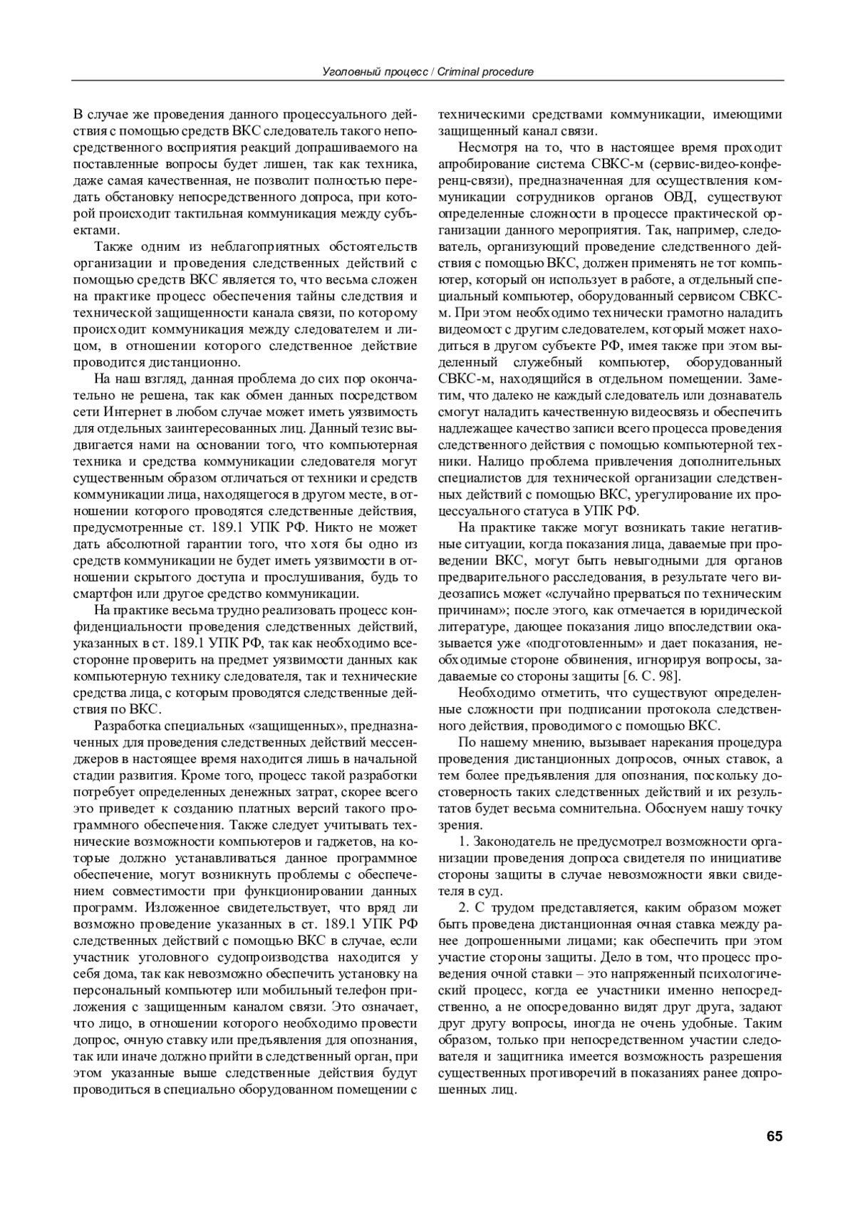 6. Плахота К. С. Использование следователем (дознавателем) видео-конференц-связи при производстве следственных действий // Известия тульского государственного университета. Экономические и юридические науки. 2022. № 1. С. 95-102. EDN: VWKZCQ