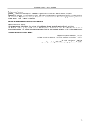 ЗАТЕЕВ П. Е., НОСКОВА Е. В. ПРОБЛЕМЫ ПРАКТИКИ ПРИМЕНЕНИЯ ОСОБОГО ПОРЯДКА СУДЕБНОГО РАЗБИРАТЕЛЬСТВА // УГОЛОВНАЯ ЮСТИЦИЯ. 2024. № 23