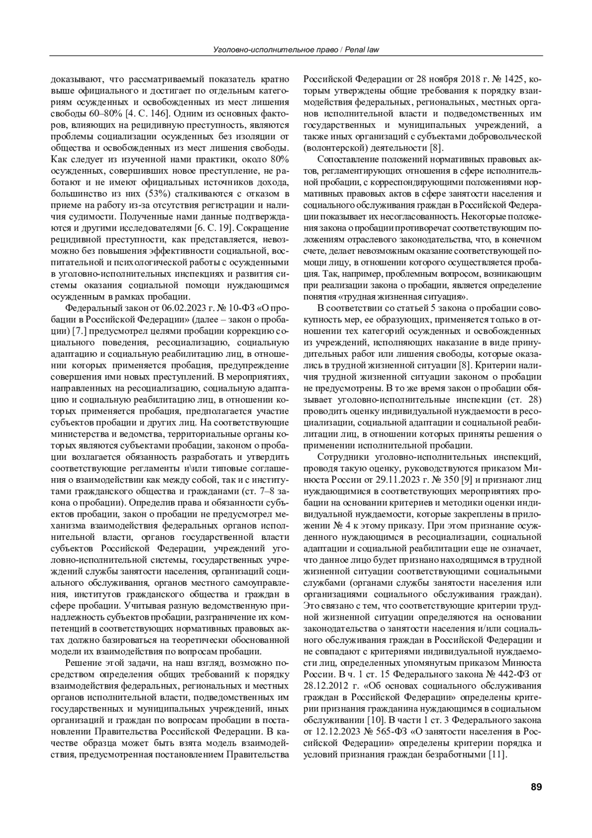 9. О ресоциализации, социальной адаптации и социальной реабилитации лиц, в отношении которых применятся пробация в соответствиии с Федеральным законом от 06.02.2023 № 10-ФЗ “О пробации в Российской Федерации. приказом Минюста России от 29.11.2023 г. № 350 // СПС “КонсультантПлюс” (дата обращения: 09.01.2024).