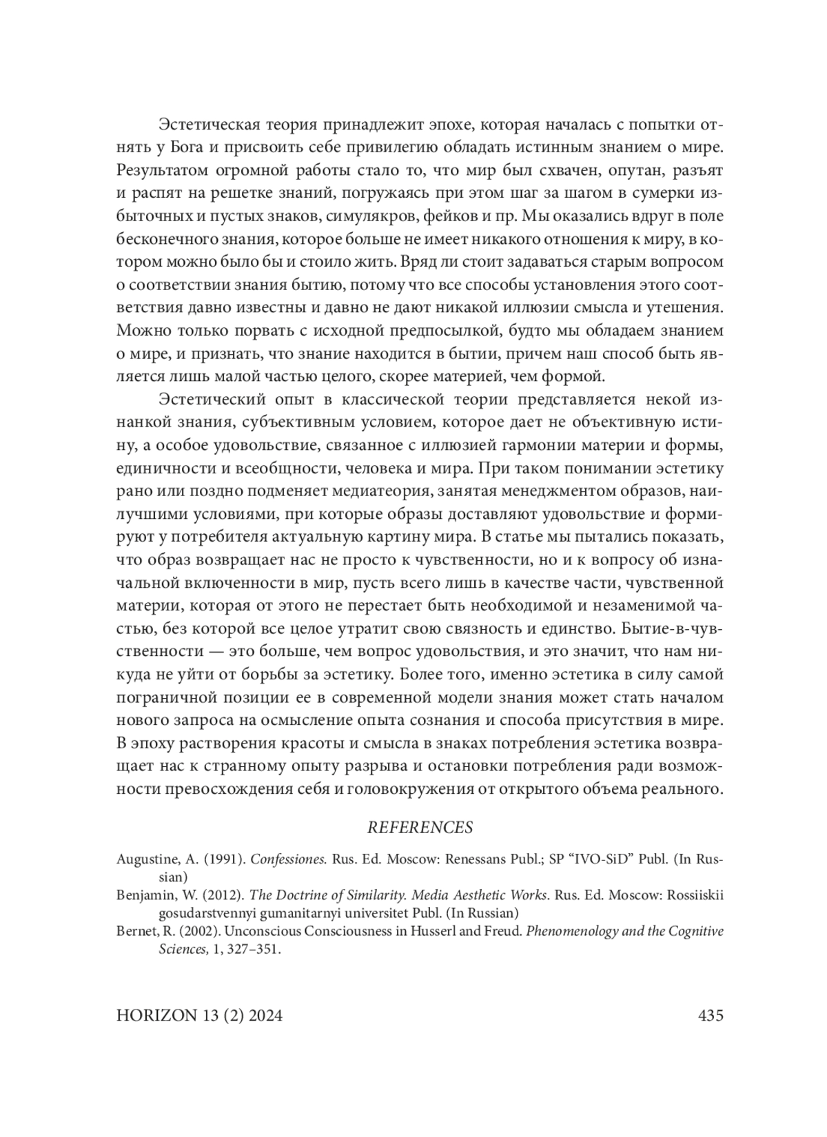 20. Tengelyi, L. (2012). Phenomenology and Categories of Experience. Horizon. Studies in Phenomenology, 1 (2), 201-220. (In Russian).