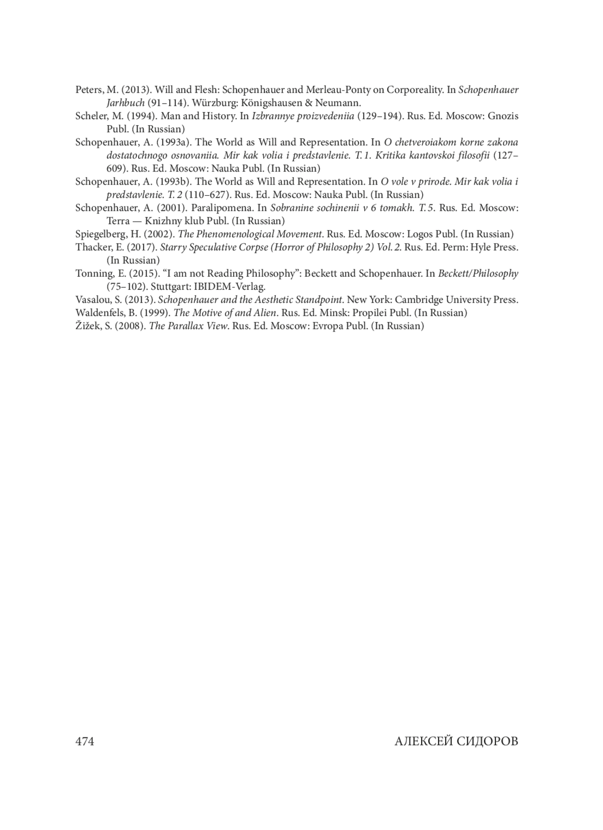 21. Schopenhauer, A. (2001). Paralipomena. In Sobranine sochinenii v 6 tomakh. T. 5.Rus. Ed. Moscow: Terra - Knizhny klub Publ. (In Russian).