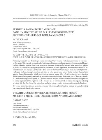 12. Lang, P. (2008).Introduction à la phénoménologie du vécu musical. Annales de phénoménologie, 7, 47-76.