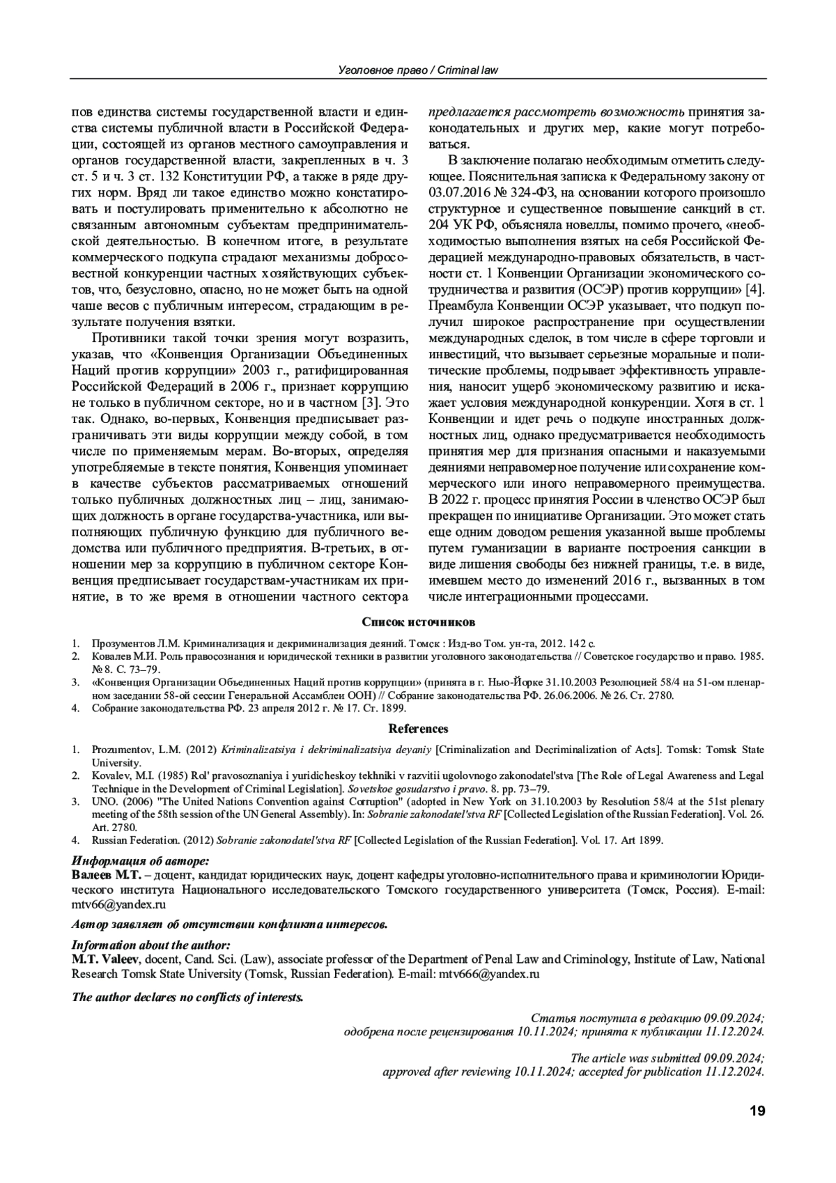 1. Прозументов Л.М. Криминализация и декриминализация деяний. Томск: Изд-во Том. ун-та, 2012. 142 с.