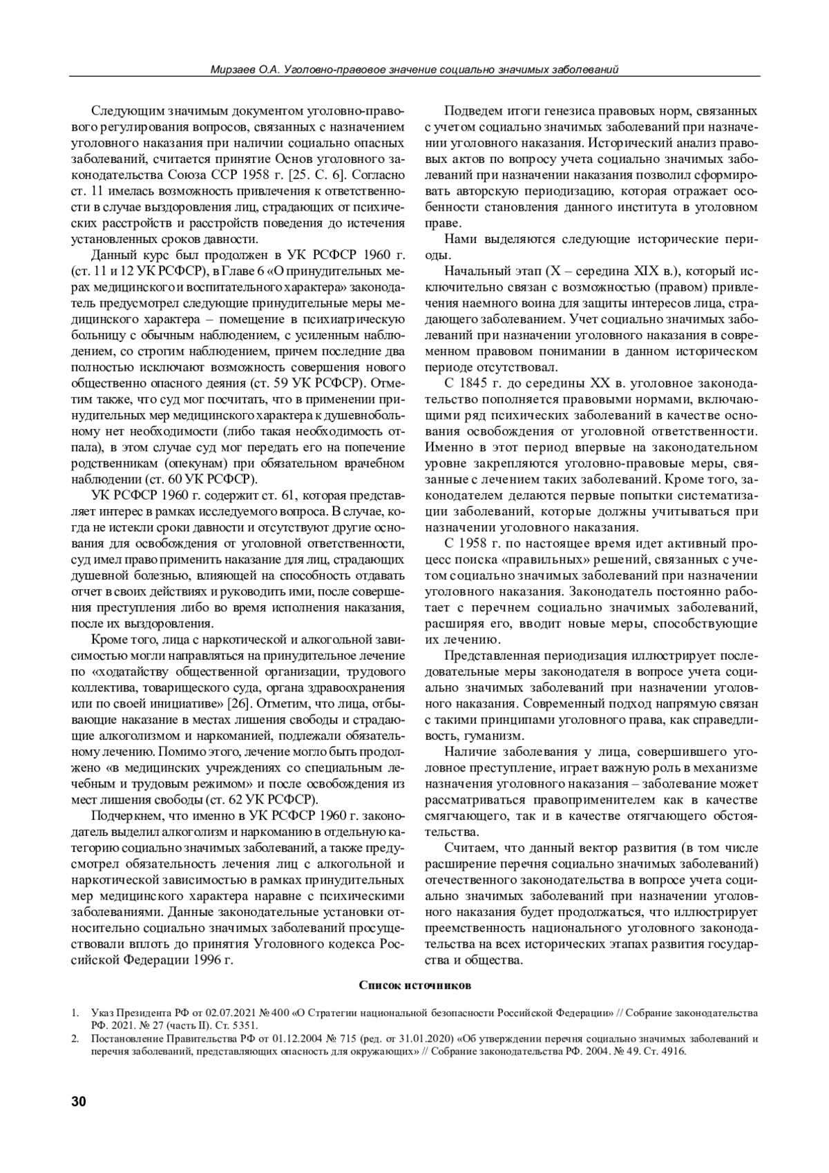 2. Постановление Правительства РФ от 01.12.2004 № 715 (ред. от 31.01.2020) “Об утверждении перечня социально значимых заболеваний и перечня заболеваний, представляющих опасность для окружающих” // Собрание законодательства РФ. 2004. № 49. Ст. 4916.