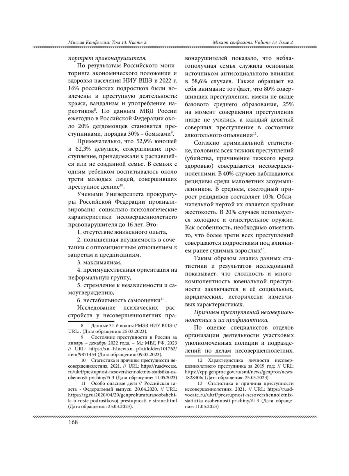 8. Криминологическая характеристика преступности несовершеннолетних в современной России / Статья в журнале “Молодой ученый” // URL: https://moluch.ru/archive/443/97181/(Дата обращения: 13.05.2023).